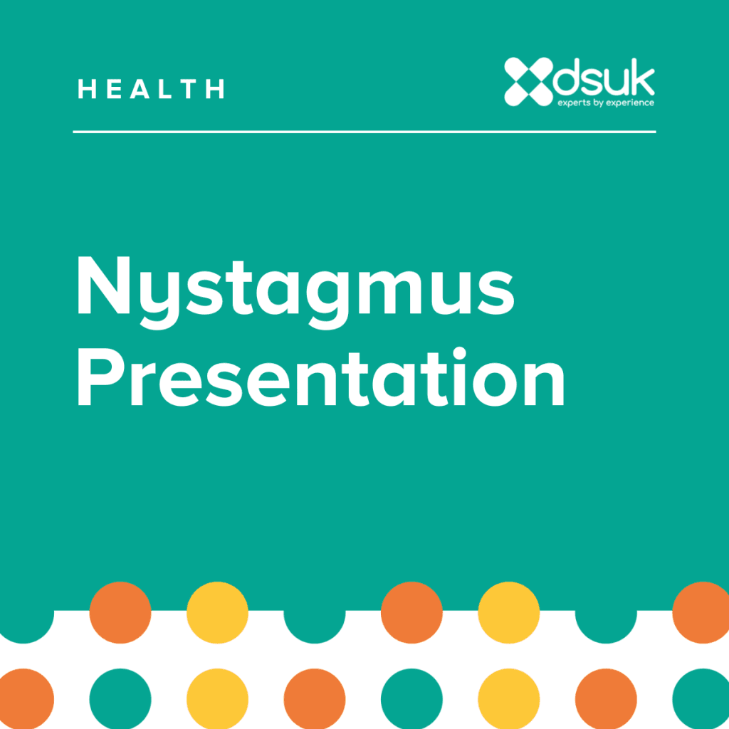 There is a higher incidence of the condition nystagmus in children and young people with Down syndrome. In 2022 DSUK collaborated with Maggie to publish research around the experiences of parents of children and young people with Down syndrome and nystagmus.Â