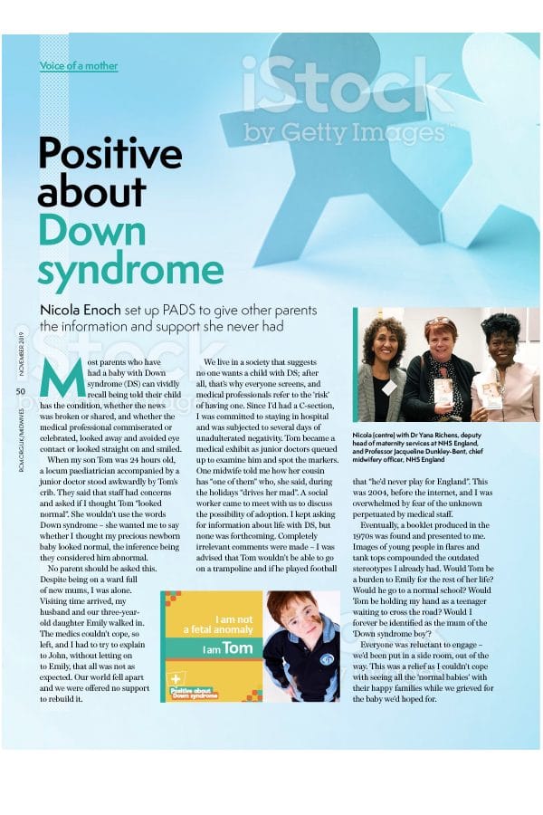 In January 2019 we were proud to launch the Personalised antenatal care of pregnancies suspected or diagnosed with Down syndrome, in collaboration with St George’s University Hospital Trust and Down’s Syndrome Research Foundation. We would encourage all maternity units to adopt this pathway to provide expectant parents with the best care.