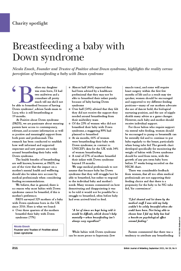 Sarah hosts online information sessions for professionals on breastfeeding a baby with Down syndrome, which features parents sharing their stories, general information and best practice.